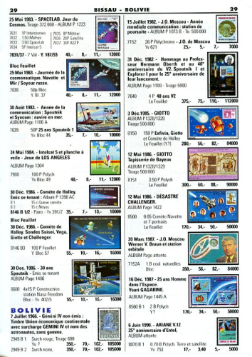Catalogue with hundreds of stamps about space flight.